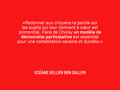 Notre ambition est de créer un programme avec et pour les Choisyen.nes. Nous souhaitons que chacun.ne puisse participer à son élaboration, apporter ses connaissances sur sa ville, son quartier. Pour un programme au plus près des besoins et des envies des habitant.es.